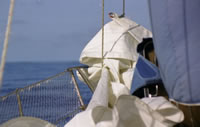 en bereiden ons voor op wat er allemaal kan komen. Dagenlang slepen we extra water en eten aan boord, totdat er echt niets meer bij kan. De lijst met voorbereidingen die we voor de Grote Oversteek moeten treffen bevat nog minstens vijftig punten en elke dag worden het er meer. We besteden vooral veel aandacht aan het overleven op zee wanneer de Ritme zou zinken. Ik ben net een harpoen met een drijvertje op het kajuitdak aan het binden, zodat ik de harpoen tegelijk met het reddingsvlot overboord kan zetten en zo vanuit het vlot mogelijk een vis kan vangen, wanneer een ervaringsdeskundige - een zeiler die al een keer eerder naar de overkant zeilde - me door het stellen van één vraag weer met beide voeten op de grond zet. 'Hoe gaan jullie oversteken, per boot of per reddingsvlot?' Het wordt tijd om de laatste verse groentes en fruit in te slaan en deze gekte achter ons te laten. (...) |